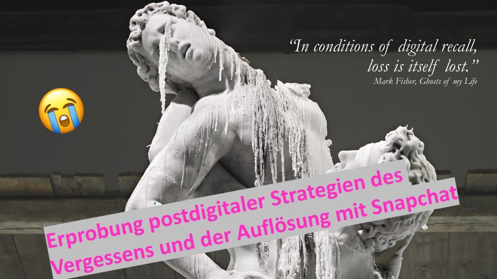 Die Abiturvorgaben für das Fach Kunst im Land NRW sehen in der Oberstufe die Beschäftigung mit dem Installationen und Plastiken Louise Bourgeois als ‚Konstruktionen von Erinnerung‘ vor. Im Zuge der vom Institut für Kunst und Kunsttheorie der Universität Köln und unter Leitung von Kristin Klein und Konstanze Schütze veranstalteten Lehrerinnenfortbildung Postdigitale Medienkultur in der Schule: Aktuelle Kunst meets Lehrplan erprobten wir unter anderem im Rahmen eines von mir geplanten Workshops, inwiefern eine Annäherung an eine solchen – durch gestalterische Mittel erzeugte – Konstruktion von Erinnerung auch (sozusagen über Bande gespielt) durch die Thematisierung von Prozessen von Auslöschen und Auflösung in digitalen Medienformaten möglich ist.